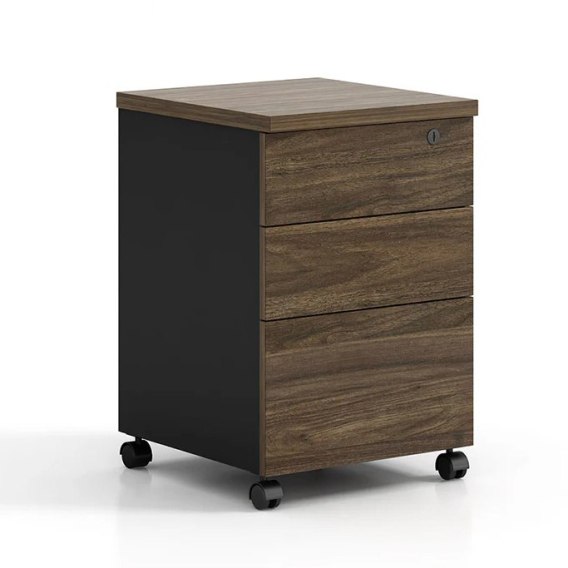Kompaktowy kontener do biurka w stylu loft. Trzy pojemne szuflady pomagają zapanować nad dokumentami i akcesoriami, a kółka umożliwiają szybkie przestawienie pod lub obok stanowiska.