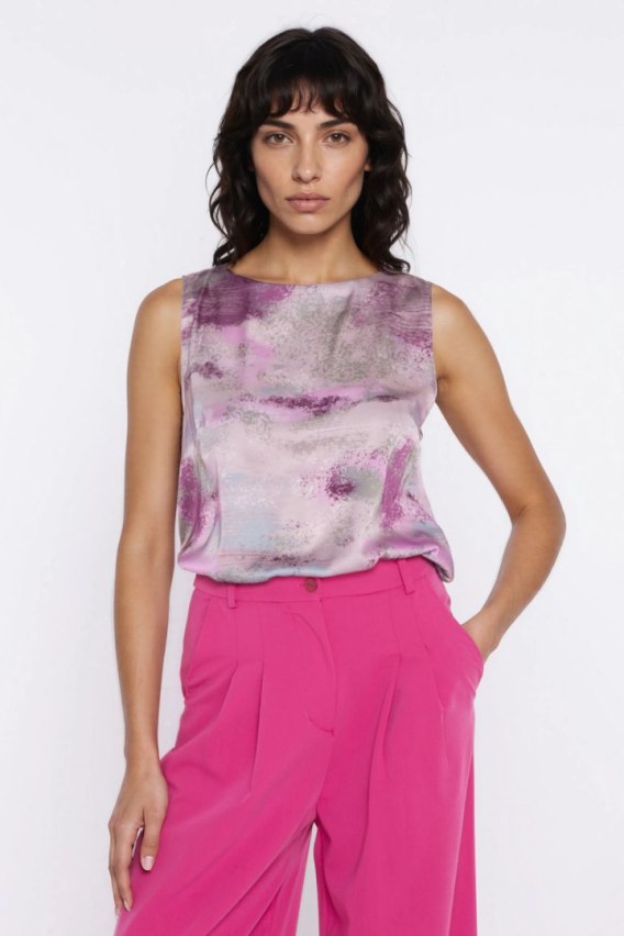 Bluzka o kroju trapezu, bez rękawów B320 Wzór - Nife Nife
