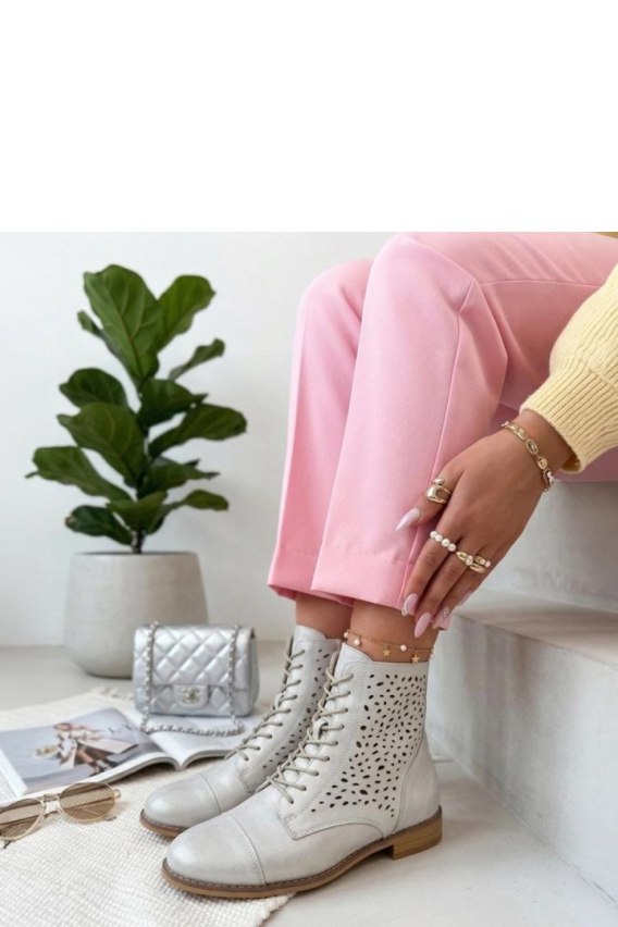 Stylowe botki ażurowe sznurowane to doskonała propozycja dla kobiet ceniących wygodę oraz modny, lekki design. Wykonane z wysokiej jakości skóry naturalnej, zapewniają trwałość, komfort i odpowiednią przewiewność dzięki ażurowej strukturze. Model z okrągłym noskiem gwarantuje wygodę i swobodę dla stopy, a sznurowanie umożliwia idealne dopasowanie do indywidualnych potrzeb. Dodatkowym atutem jest płaski obcas o wysokości 2,5 cm, który zapewnia stabilność i komfort nawet podczas długiego noszenia. Wysoka cholewka o wysokości 15 cm dobrze stabilizuje kostkę i nadaje butom nowoczesnego charakteru. Wkładka wykonana ze skóry naturalnej zwiększa wygodę użytkowania oraz dba o odpowiednią wentylację stopy. Minimalistyczny design bez wzorów sprawia, że botki świetnie komponują się z różnorodnymi stylizacjami, od codziennych po bardziej casualowe, stanowiąc uniwersalne uzupełnienie garderoby.