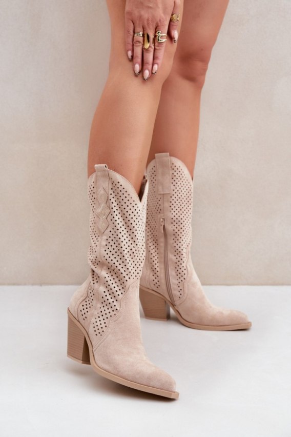 Botki kowbojki to wyjątkowy model dla kobiet, które cenią sobie połączenie stylu i komfortu. Ażurowa cholewka dodaje unikalnego charakteru. Miękka wkładka wykonana z eko skóry zapewnia doskonały komfort noszenia, dbając o stopy nawet podczas długiego użytkowania. Stabilny obcas słupek łączy elegancję z praktycznością, umożliwiając swobodne poruszanie się. Model wsuwany z dodatkowym zapięciem na zamek gwarantuje łatwe zakładanie oraz idealne dopasowanie do stopy. Szpiczaste noski podkreślają kobiecość i dodają wyrafinowanego wyglądu. Stylowe botki kowbojki doskonale komponują się zarówno z jeansami, jak i bardziej eleganckimi stylizacjami, nadając im wyrazisty i modny akcent. Idealne na każdą okazję, te botki są must-have w każdej garderobie!