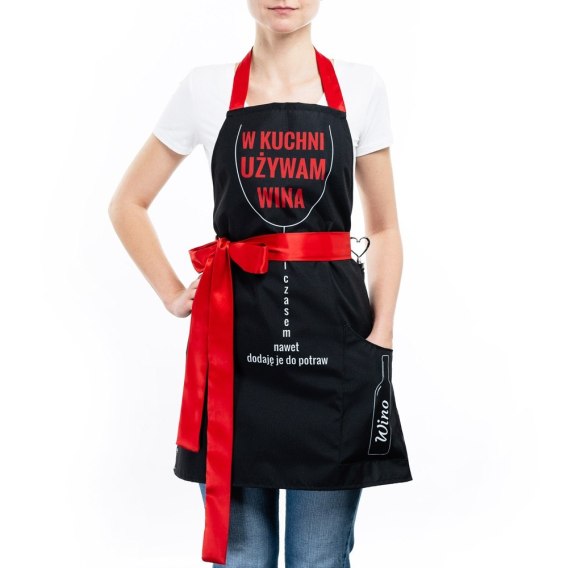 Przepis na sukces w kuchni? Używaj więcej wina! Odrobina do risotto, trochę do mięsa, najlepiej jednak... do pojemnego kieliszka. Jeśli znasz damę, która o gotowaniu myśli podobnie, a do tego ma poczucie humoru, podaruj jej fartuszek z napisem: W kuchni używam wina. Czasami nawet dodaję je do potraw.