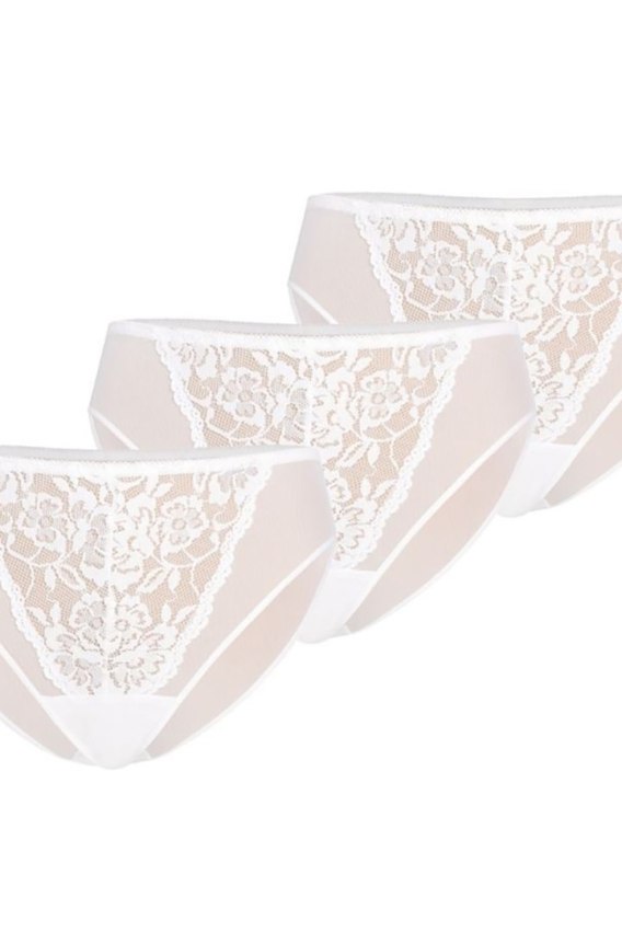 Zestaw damskich majtek klasycznych w kolorze śnieżnej bieli. Klasyczne majtki są bardzo popularne wśród kobiet, ponieważ układają się dobrze na każdej sylwetce bez względu na rozmiar. Ponadto wielopaki cieszą się dużym uznaniem wśród kupujących z uwagi na atrakcyjną cenę. Jakość majtek w trójpaku jest wysoka, siatka prześwitująca, z której są wykonane jest wysokiej jakości, delikatna miła dla kobiecego ciała przewiewna, i nie zwykle kusząca dla płci przeciwnej. Biały kolor majtek sprawdzi się pod jasnymi sukienkami i przewiewnymi spódnicami. Przód majtek zdobi efektowna koronka o wyrazistym gęstym motywie kwiatowym. Z tyłu pośladki kryje i jednocześnie odkrywa cienka delikatna prześwitująca siatka, która eksponuje i podkreśla pośladki. Wokół pośladków i w pasie majtki wykończone są estetycznie cienką elastyczną gumką, która podtrzymuje stabilnie majtki, zabezpiecza przed zsuwaniem się. Gumka jest na tyle elastyczna, że nie odcina w pasie i nie dzieli pośladków, nie zostawia śladów na skórze. W kroku od wewnętrznej strony majtki wykończone są podwójną warstwą bawełny, która jest delikatna i gwarantuje komfort wygodę i świeżość podczas noszenia. Zestaw majtek będzie dobrym pomysłem na prezent.