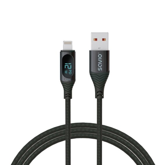 Kabel USB SAVIO CL-173, USB do Lightning, z wyświetlaczem cyfrowym, 1m, czarny Savio