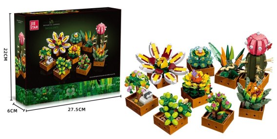 Klocki Konstrukcyjne Kwiaty Doniczkowe to wyjątkowa propozycja dla osób, które kochają kreatywne budowanie oraz oryginalne dekoracje. Zestaw składa się z 913 elementów, dzięki którym można stworzyć bogatą kolekcję kolorowych roślin doniczkowych - od egzotycznych kaktusów po efektowne kwiaty o rozłożystych płatkach.