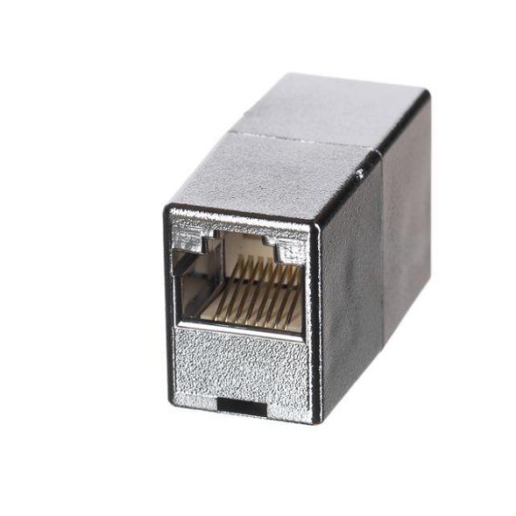 łączówka RJ45/RJ45, posiada dwa gniazda, pozwala na podłączenie wtyczki 6p6c - RJ11/RJ12, pozwala na podłączenie wtyczki 8p8c - RJ45, spełnia wymagania kat. 5e