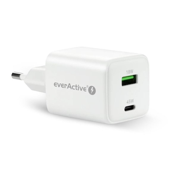Ładowarka sieciowa everActive GaN SC-450Q 1x USB, 1x USB-C PD PPS QC4+ 45W Everactive