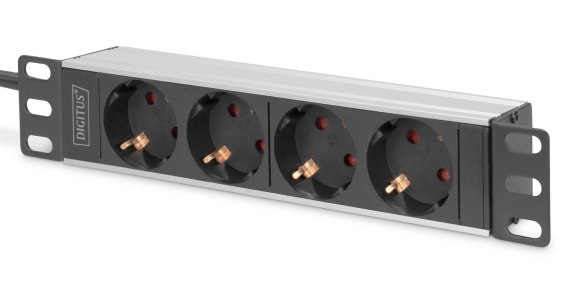 Listwa zasilająca DIGITUS do szaf 10" RACK 4xSchuko, 2m 1xSchuko, 16A, aluminiowa Digitus