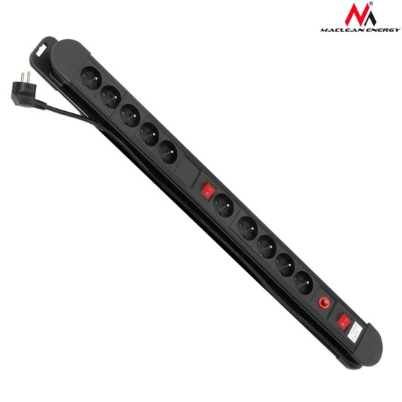 Listwa zasilająca przedłużacz Maclean MCE10 10 gniazd z 2 włącznikami czarna 1,5m 3680W Maclean