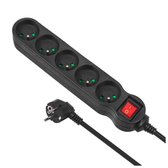 Listwa zasilająca przedłużacz Maclean MCE185 5 gniazd z wyłącznikiem czarna 5m 2300W Maclean