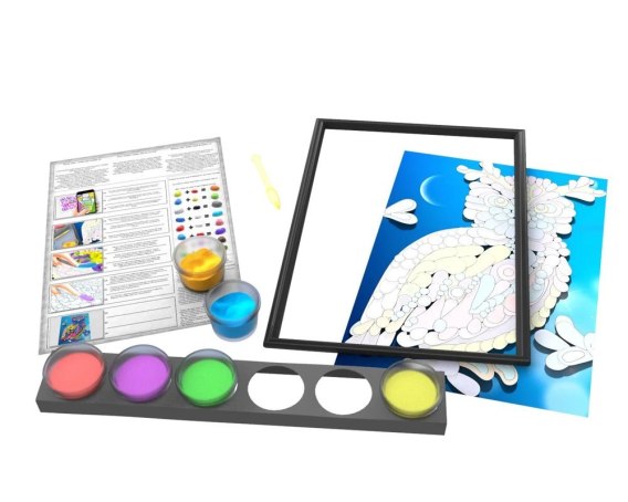 Stworzenie własnego obrazu już nie będzie dla nikogo problemem. Ten wspaniały zestaw dostarczy każdemu wiele radości i relaksu. Zawartość umożliwi wyklejenie obrazu z gotowej masy w wyznaczonych miejscach. Jedwabista konsystencja glinki ułatwia tworzenie wzorów, zachowuje swój kształt, szybko schnie i nie traci blasku. Gotowy obraz może stanowić dekoracje do domu, bądź być prezentem dla najbliższych. Czas całkowitego utwardzania masy to około 2-3 dni. Wyklejanie ciastoliny rozwija zmysł dotyku, zdolności manualne i wyobraźnie, dodatkowo ugniatanie masy działa również odprężająco. Produkt jest nieodpowiedni dla dzieci poniżej 3 roku. Substancja jest nie toksyczna i nie wywołuje alergii, posiada certyfikat CE.