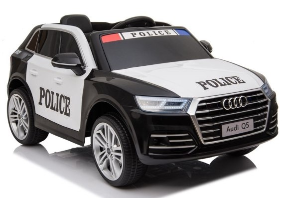 Znane wszystkim Audi Q5 jest samochodem, które przyciąga uwagę każdego — łączy w sobie dynamikę, styl i komfort najwyższej jakości. Detale pojazdu, które cieszą się największą popularnością, to wąska linia delikatnie przyciemnianych szyb oraz szeroki, duży grill. Policyjne, czarne Audi Q5 dla dzieci zasilane jest akumulatorem, posiada oryginalną licencję koncernu, dzięki czemu zdobi je logo producenta w przedniej i tylnej części oraz na kierownicy.