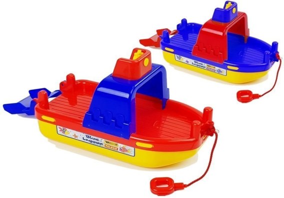 Pomost promu jest ruchomy. Opuszcza się, kiedy trzeba załadować samochód na pokład. Podczas rejsu jest podniesiony i uniemożliwia zjechanie ładunku do wody. Na szczycie znajduje się koło sterowe, Twój maluch może zostać ich kapitanem. Z przodu łodzi znajduje się sznureczek, dziecko może ciągnąć po tafli wody prom. Wykonanie z plastiku pozwala na to, aby kuter unosił się i dryfował na wodzie.