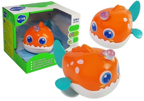 Pomarańczowa Rybka posiada turkusową płetwę, uroku dodają jej efekty świetlne. Rybka kąpielowa posiada dużą płetwę, dzięki której może pływać podczas kąpieli w wannie, a mały otwór na głowie wypuszcza strumień wody.