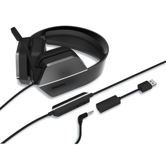 Odłączany mikrofon jednokierunkowy z redukcją szumów, Poduszki nauszne ze skóry ekologicznej z pianką z pamięcią kształtu, Połączenie USB i 3,5 mm zapewnia zgodność z wieloma platformami, Przetworniki 50 mm, zamknięta konstrukcja, dostosowane do gier, Przycisk wyciszania, Regulowana opaska zapewnia większy komfort, Rodzaj magnesu: Neodymowy, Sterowanie na przewodzie umożliwia szybkie regulowanie funkcji, System akustyczny: Zamknięty, Technologia DTS Headphone: X 2.0 zapewnia dźwięk przestrzenny 7.1, Typ: dynamiczny, Wymiary produktu (szer. x wys. x gł.): 190 x 222 x 82 mm