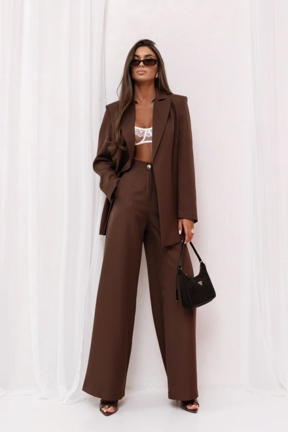 Odkryj elegancję i nowoczesność z garniturem EMMA w kolorze brązowym. Ten wyjątkowy zestaw został zaprojektowany z myślą o kobietach, które cenią sobie zarówno styl, jak i wygodę. Dzięki połączeniu wysokiej jakości materiałów, 95% wiskozy i 5% elastanu, garnitur zapewnia doskonałą oddychalność oraz elastyczność, co czyni go idealnym wyborem na różnorodne okazje, od formalnych spotkań po wyjścia ze znajomymi. Garnitur EMMA to propozycja, która podkreśli Twoją indywidualność i styl na wielu płaszczyznach. Przeznaczony dla kobiet, które cenią elegancję oraz wygodę noszenia, sprawdzi się doskonale zarówno w biurze, jak i podczas miejskich wypadów. Wybierz garnitur EMMA i daj się ponieść modowym trendom bez rezygnacji z komfortu.