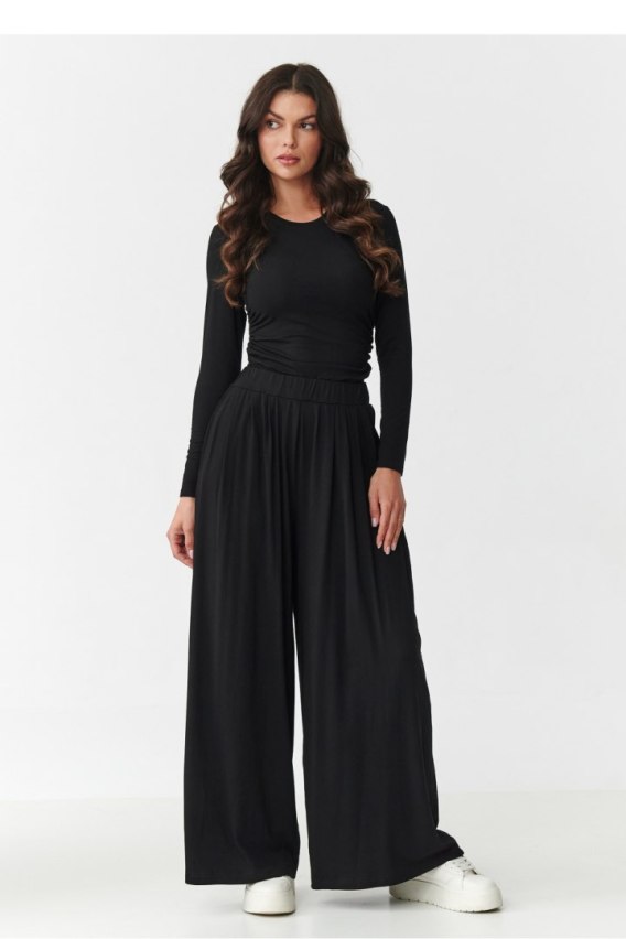 Ten komplet to idealna propozycja dla kobiet, które szukają połączenia wygody, stylu i delikatności. Wykonany z miękkiej, przyjemnej w dotyku wiskozy, idealnie dopasowuje się do sylwetki, zapewniając swobodę ruchów i wygodę przez cały dzień. Górę zestawu stanowi dopasowana bluzka z długim rękawem, która wyróżnia się subtelnym marszczeniem po bokach. Ten kobiecy detal nie tylko podkreśla talię, ale też nadaje całości eleganckiego, ale niezobowiązującego charakteru. To połączenie prostoty z modnym detalem sprawia, że bluzka świetnie sprawdzi się nie tylko jako część kompletu, ale również solo w wielu stylizacjach. Szerokie, luźno układające się spodnie to gwarancja wygody i stylu w jednym. Dzięki elastycznej talii i swobodnemu krojowi świetnie sprawdzają się w ruchu, a boczne kieszenie dodają im funkcjonalności. To idealny fason zarówno do noszenia w domu, jak i w streetowych stylizacjach. Zestaw damski dostępny jest w modnych, uniwersalnych kolorach: antracytowy, czarny, czekoladowy, khaki oraz bordowy. Postaw na komfort, który idzie w parze z kobiecym wyglądem wybierz komplet z wiskozy, który dopasuje się do Twojego stylu życia i sylwetki.