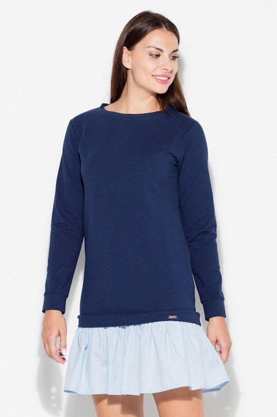 Model z długim rękawem wykonany z bawełny dodaje komfortu noszenia. Minimalistyczny krój w połączeniu z falbanką nadaje wdzięku i delikatności w codziennym użytkowaniu. Model świetnie sprawdzi się w wersji z tenisówkami.