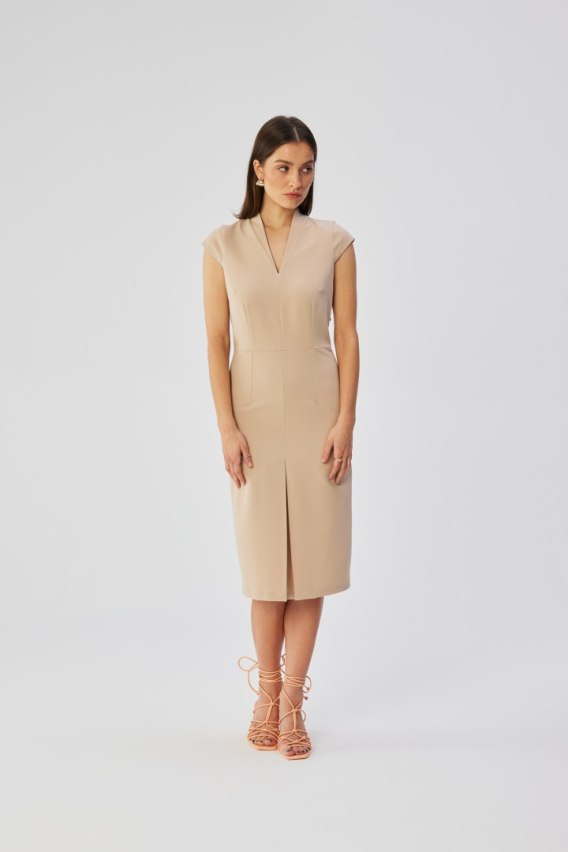 Zapraszamy do odkrycia polskiego rękodzieła i elegancji w postaci tej urokliwej sukienki, stworzonej z najwyższą starannością przez utalentowanych projektantów z Polski. Wykorzystana tkanina to wyjątkowy materiał, charakteryzujący się nie tylko wysoką jakością, ale także subtelnym połyskiem, który podkreśla elegancję każdego ruchu. Sukienka prezentuje się niezwykle kobieco dzięki dopasowanemu krojowi, podkreślającym wdzięki sylwetki. Dekoracyjny, podwójny dekolt w kształcie litery V dodaje charakteru i subtelnego uroku. Mini rękawki nadają lekkości i delikatności, podkreślając jednocześnie elegancję stylizacji. Odcinanie w talii sprawia, że sukienka jest nie tylko modna, ale również kobieca i przyjazna dla różnych typów sylwetki. Kontrafałda z przodu nadaje lekki efekt lekkości i dodatkowej objętości, sprawiając, że sukienka prezentuje się wyjątkowo stylowo i oryginalnie. Długość sukienki za kolano nadaje się doskonale na wiele okazji, zarówno formalne, jak i bardziej swobodne. Zamek kryty na boku dodaje elegancji i sprawia, że sukienka jest łatwa do założenia. To wyjątkowe dzieło kunsztu krawieckiego nie posiada podszewki, co sprawia, że noszenie jej jest nie tylko komfortowe, ale także przewiewne i idealne na cieplejsze dni. Sukienka z polskiego atelier to nie tylko moda, to również wyraz lokalnej tradycji rzemiosła krawieckiego, której warto dać szansę zabłysnąć na światowym rynku mody.