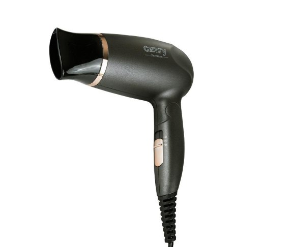 Kolor: metaliczny szary ze złotymi elementami dekoracyjnymi, Koncentrator powietrza, Moc maksymalna:1400W, Rozmiary urządzenia po złożeniu Szero.:17,5cm, dług.:11cm, głębo.:6 cm, Typ obudowy: tworzywo sztuczne ABS