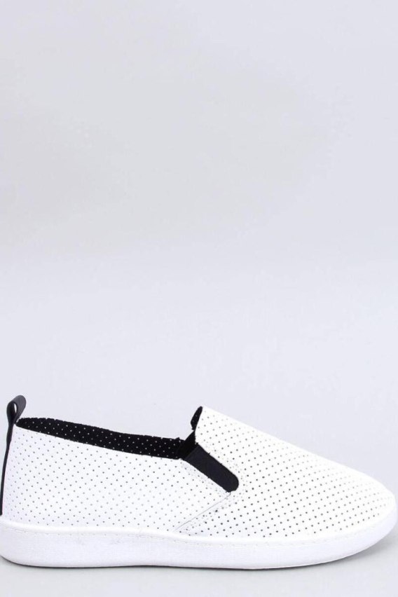 Ażurowe trampki - tenisówki damskie typu slip-on. Kontrastowe dodatki sprawiają, że buty mają tak zwane ?to coś?. Wykonane są z delikatnej skóry ekologicznej o przewiewnej, dziurkowanej fakturze. Te wsuwane trampki to gwarancja stworzenia w prosty sposób doskonałej wiosennej stylizacji ? sprawdź to sama! Wkładka wewnętrzna ? tkanina.