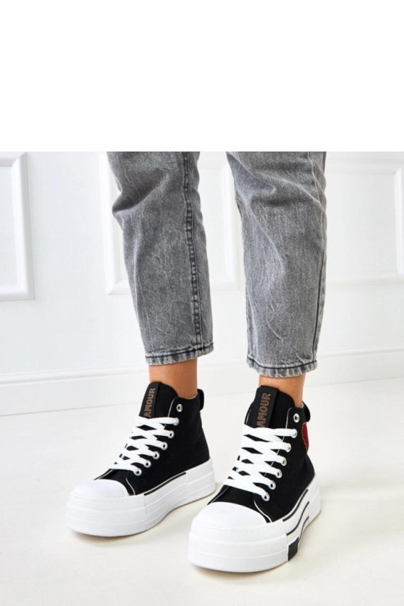 Stylowe trampki damskie o niskim fasonie, wykonane z przewiewnej tkaniny, które łączą wygodę i modny design. Klasyczny, okrągły nosek oraz sznurowane zapięcie zapewniają komfort i idealne dopasowanie do stopy. Model osadzony na platformie o wysokości 4,5 cm dodaje subtelnej wysokości i nowoczesnego charakteru. Ozdobny nadruk w kształcie serca na boku buta podkreśla dziewczęcy i oryginalny styl obuwia. Idealne na co dzień do sportowych i casualowych stylizacji.