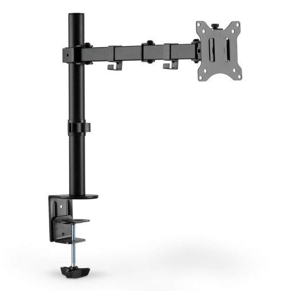 Dla monitorów od 15" do 32" (VESA 75/100), maks. ciężar 8 kg (na monitor), Funkcja Quick-Release (szybkie zamknięcie) - umożliwia, Kompaktowa konstrukcja z systemem zarządzania kablami, Monitory mogą być odchylane, pochylane, obracane i regulowane na wysokość, Montaż do biurka za pomocą zamocowania zaciskowego, gr. blatu 10-85mm, Obracanie uchwytu VESA / ramię obrotowe: 270° (3 zawiasy po 90°), Obracanie uchwytu VESA: 360°, Pochylenie uchwytu VESA: 90°, szybkie mocowanie i usuwanie monitora, VESA 75 x 75 oraz 100 x 100mm, Waga: 2,5kg