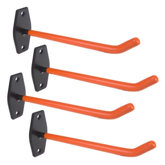 Długość: 27 cm, Do przechowywania różnego rodzaju przedmiotów, Estetyczny wygląd, Gumowana powierzchnia, Kolor: czarno-pomarańczowy, Łatwy montaż, Maksymalne obciążenie: 60 kg (na uchwyt), Materiał wykonania: stal, Minimalizuje miejsce potrzebne do przechowywania, narzędzia, opony, koła, drabina, przedłużacz, wąż ogrodowy itd., Pomaga zachować porządek w garażu lub piwnicy