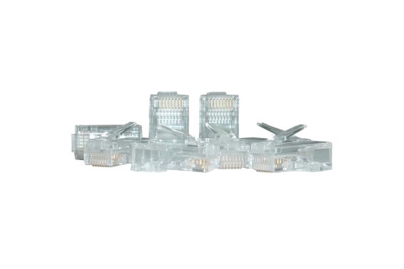 Do kabli o AWG 26-24, Kontakty złącz pokryte warstwą złoconego fosforobrązu - ok. 4-6 µm, Wtyk RJ45 8P8C nieekranowany, Wtyk uniwersalny - montaż na kablu typu linka lub drut